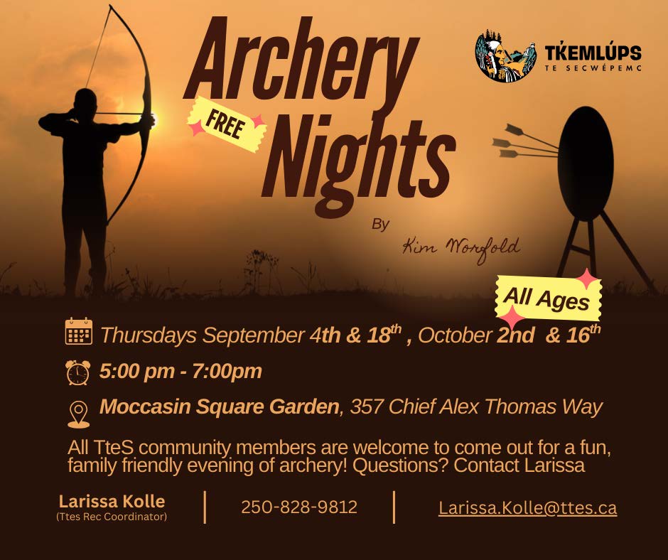 Indoor archery is back for the fall! All TteS community members are invited to come out for fun, family friendly evenings of archery. FREE and all equipment and instruction is provided.