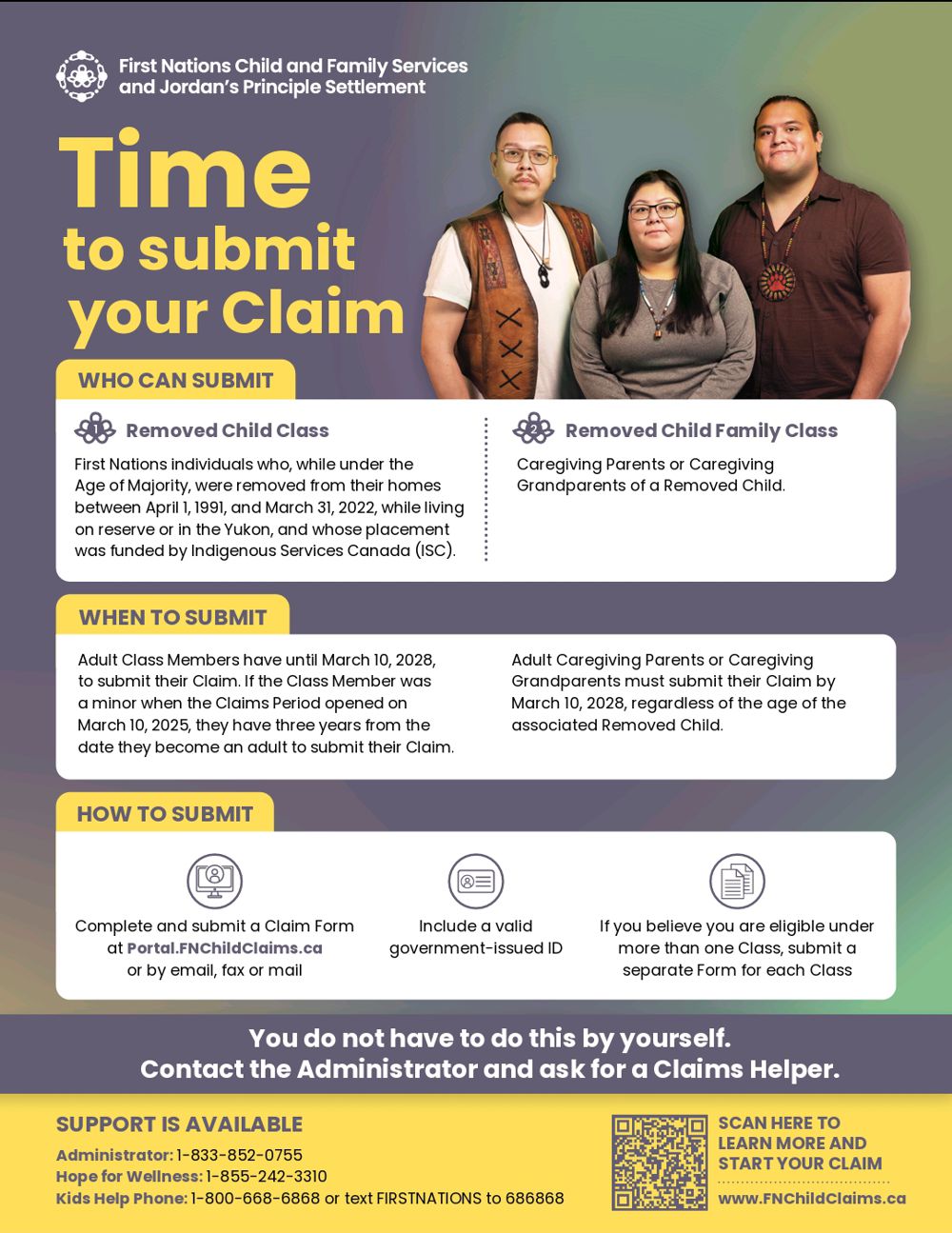 Guest speaker Alkina Aleck will present on the First Nations Child and Family Services and Jordan’s Principle Settlement. Learn who can submit a claim, when to submit, and how the process works. A Claims Helper will be on-site to provide guidance and answer questions. All community members welcome.